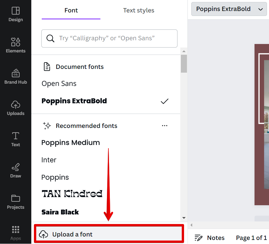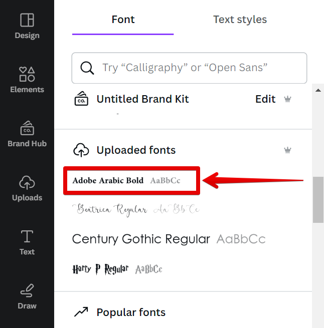 Your Adobe font will now be added to your list of Canva fonts under the Uploaded fonts section.