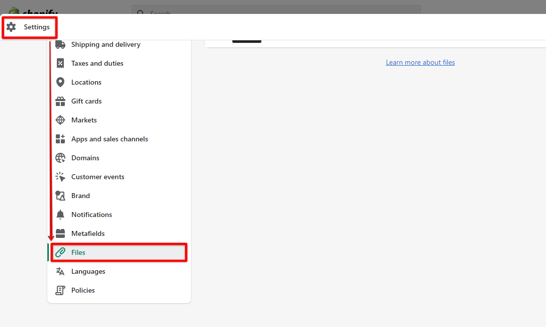 The built-in video player is located in the “Media” section of your Shopify admin. Or directly go to your Shopify settings and click the “Files” tab.