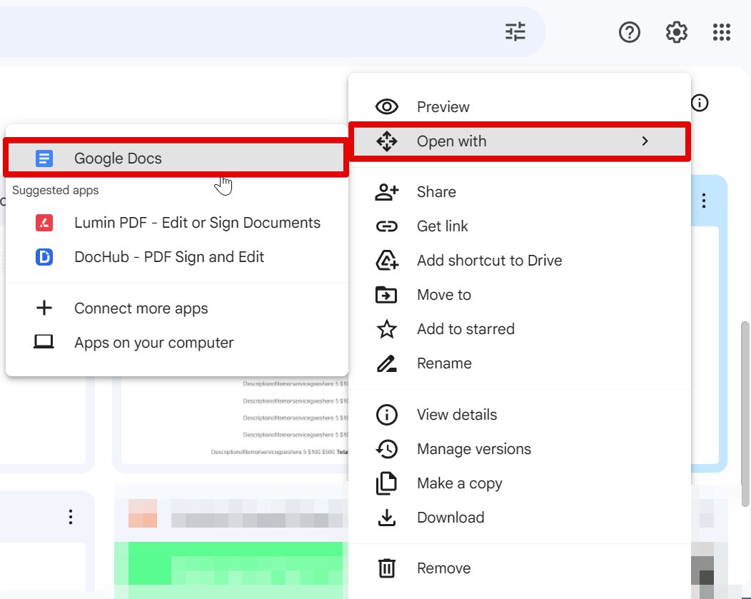 6. Once the file is uploaded, click on it and select the three dots icon in the top-right corner of the file.