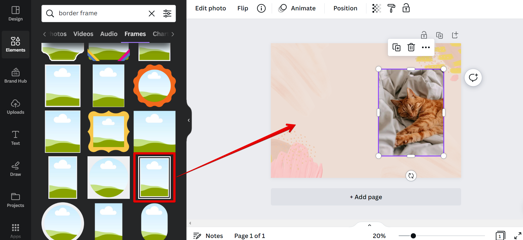 4. Select the one that you would like to be the border of your image from the Frames menu and drag it to your canvas.