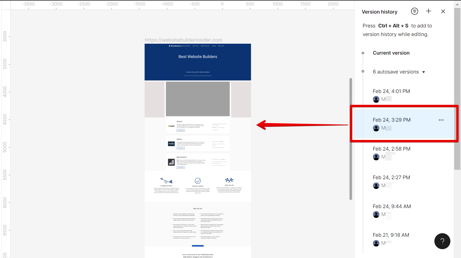 NOTE: You can also use the keyboard shortcut “Ctrl+Alt+S” to add to the version history while editing.
