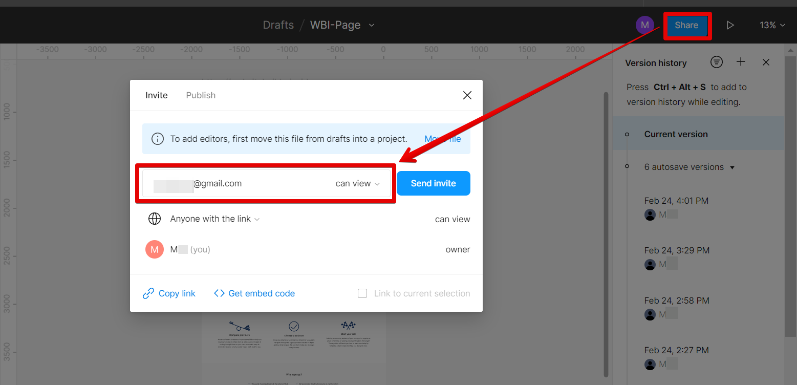 Figma also makes it easy to share your designs with others and get feedback on them. To share a file, simply click the “Share” button in the top bar and enter the email addresses of the people you want to share it with. They’ll be able to view and comment on your design, but won’t be able to make any changes themselves unless you give them edit permissions.