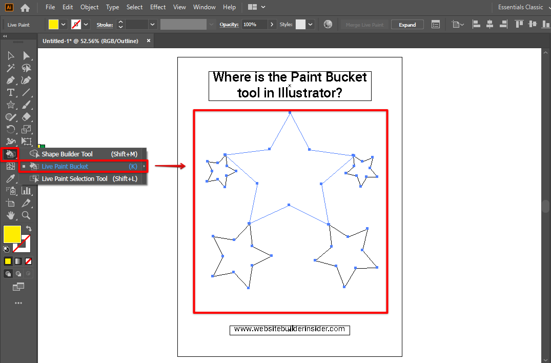 PRO TIP: The Paint Bucket tool in Illustrator is located in the toolbar. To use the Paint Bucket tool, select the object you want to fill, then click on the paint bucket in the toolbar.