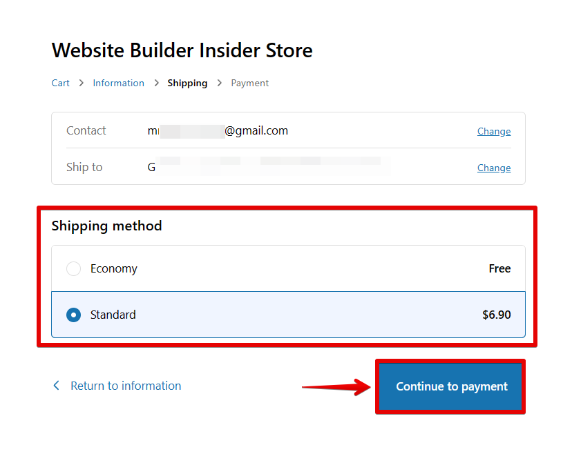 Once you’ve selected a shipping method, click “Continue to payment.”
