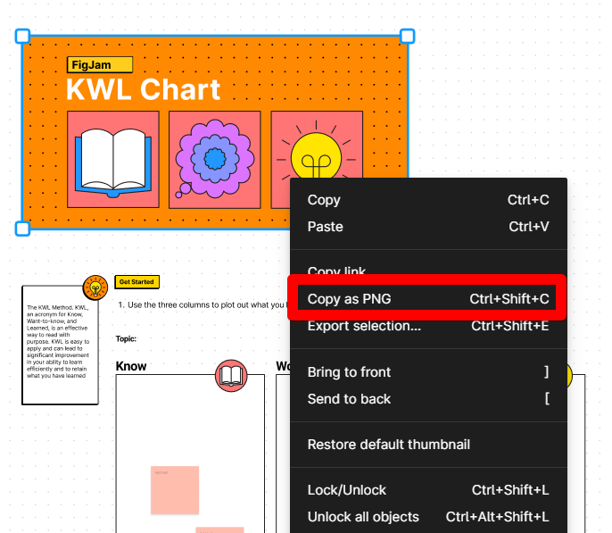Copy an item as a PNG by right-clicking it and selecting the menu option.