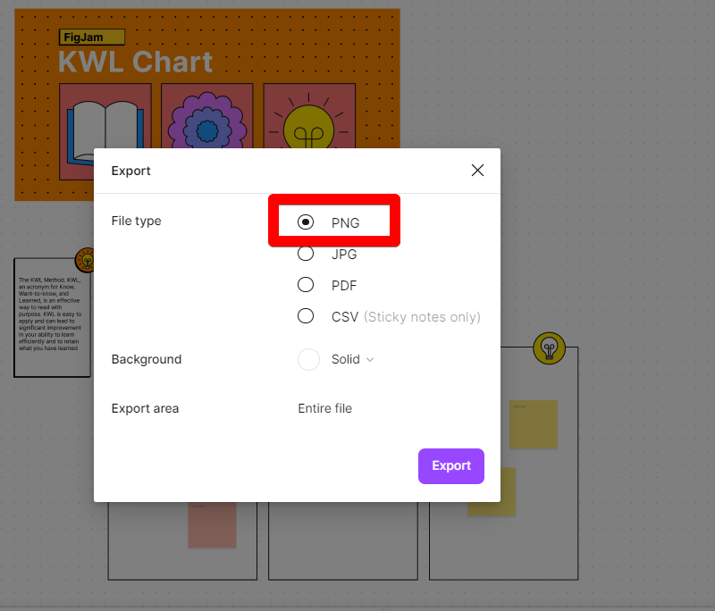 3. Choose the PNG file type for your picture.