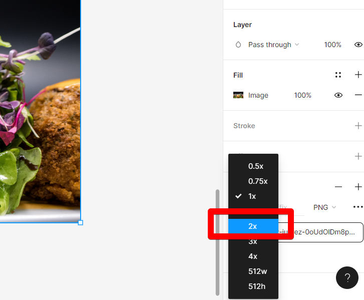 4. Pick the size “2x.” A higher-resolution PNG can be exported by increasing the export size by 2x. You won’t have to worry as much about the quality of your uploaded images deteriorating over time.