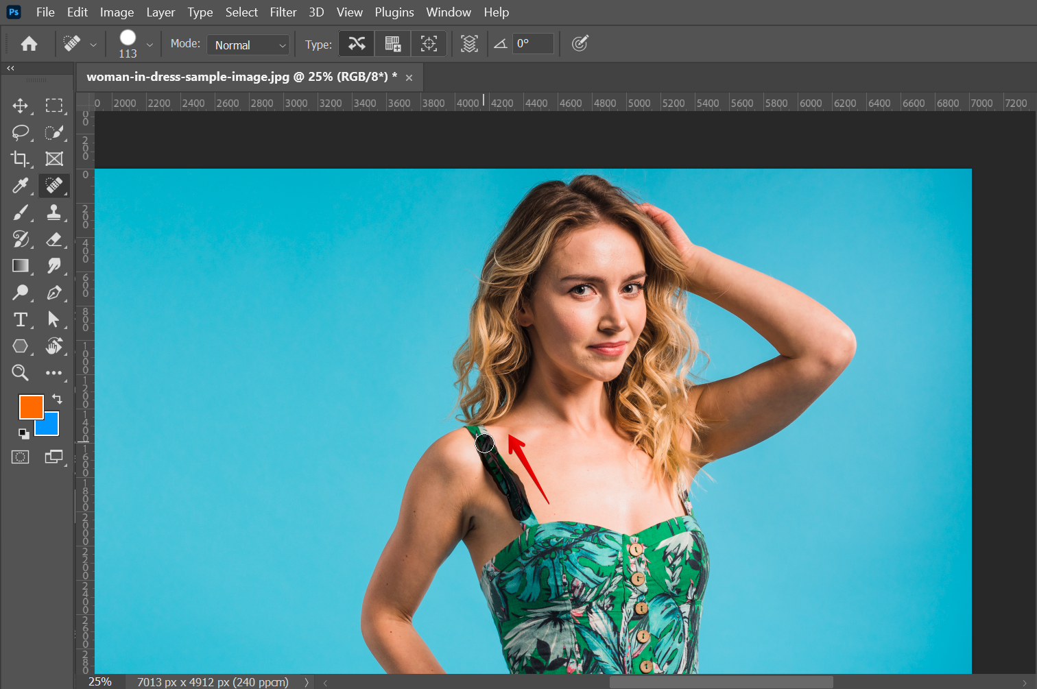 Another way to remove clothes is by using the Spot Healing Brush Tool. This tool will simply erase the pixels that make up the clothing.