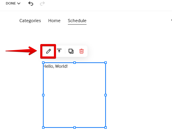 5. The code block will then be added to your page. Click on the “pen” icon to edit the block.