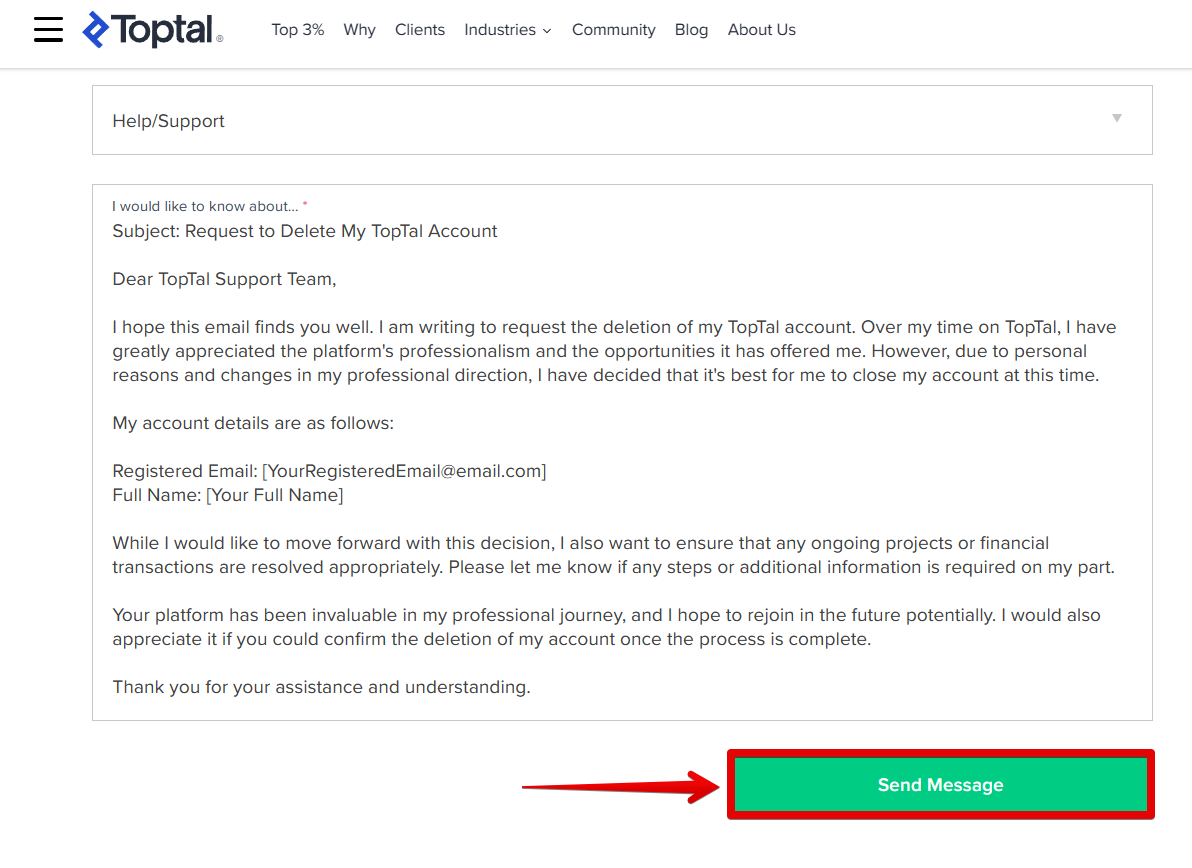 Deleting your TopTal account is simple. However, there is currently no direct way to delete your account in TopTal. You will need to reach out to the support team of TopTal for them to help you in deleting your TopTal account. To delete your TopTal account, follow these steps: