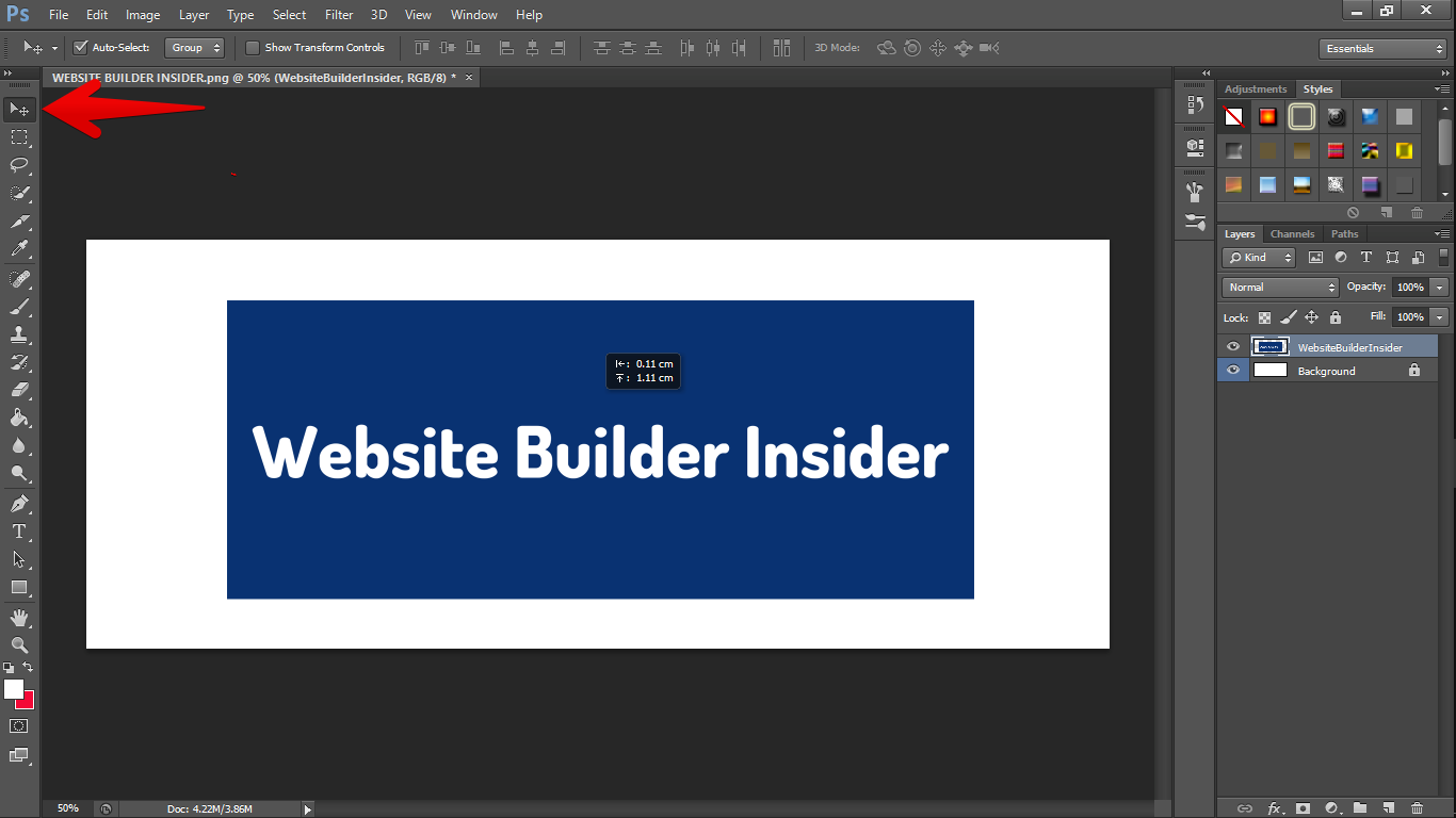 4. To move your image, click the Move Tool (V) click and drag your image anywhere on the canvas and bring it your desired location.