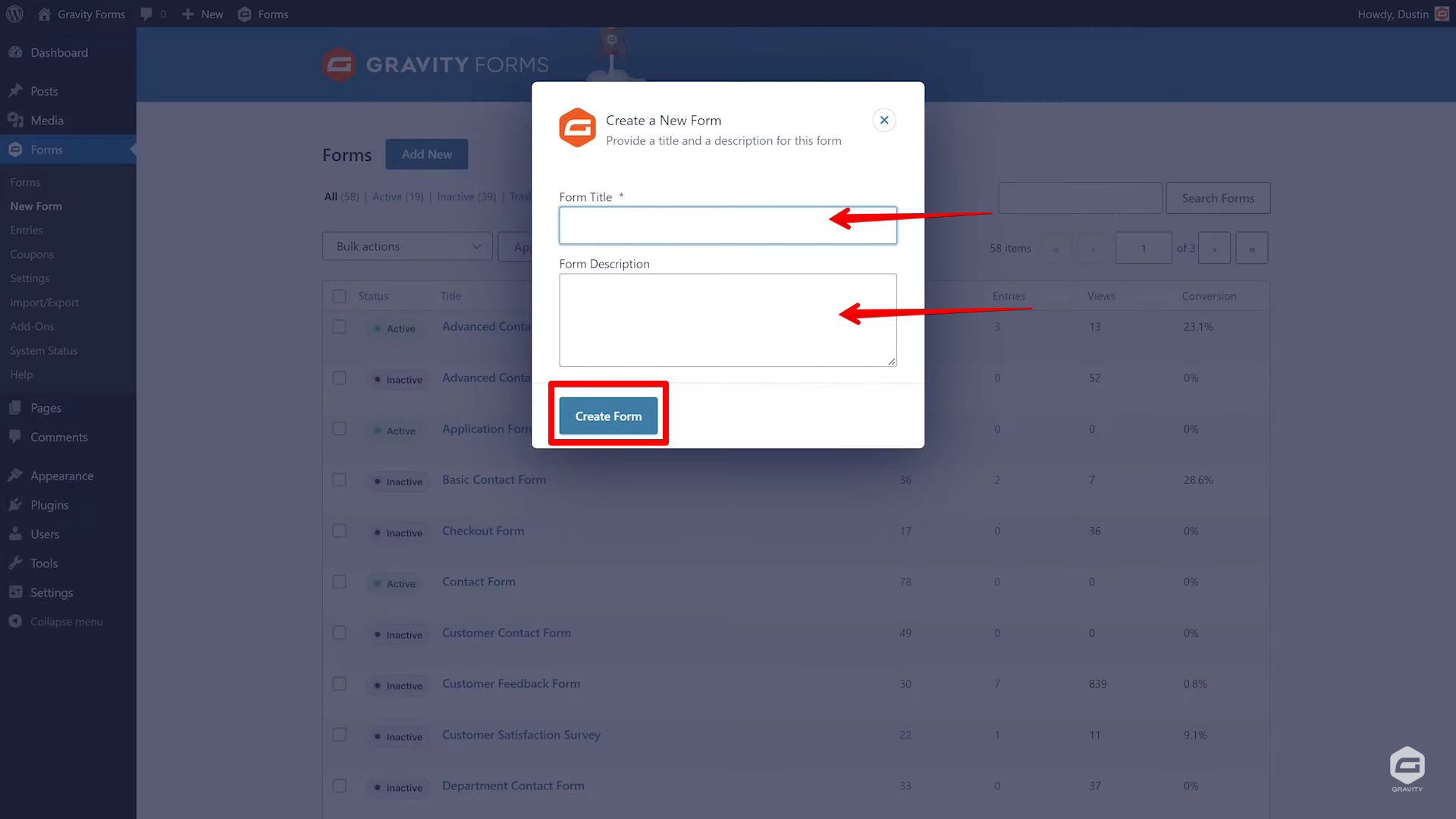 - Add “Title” and “Description” to the Form and click “Create Form“.