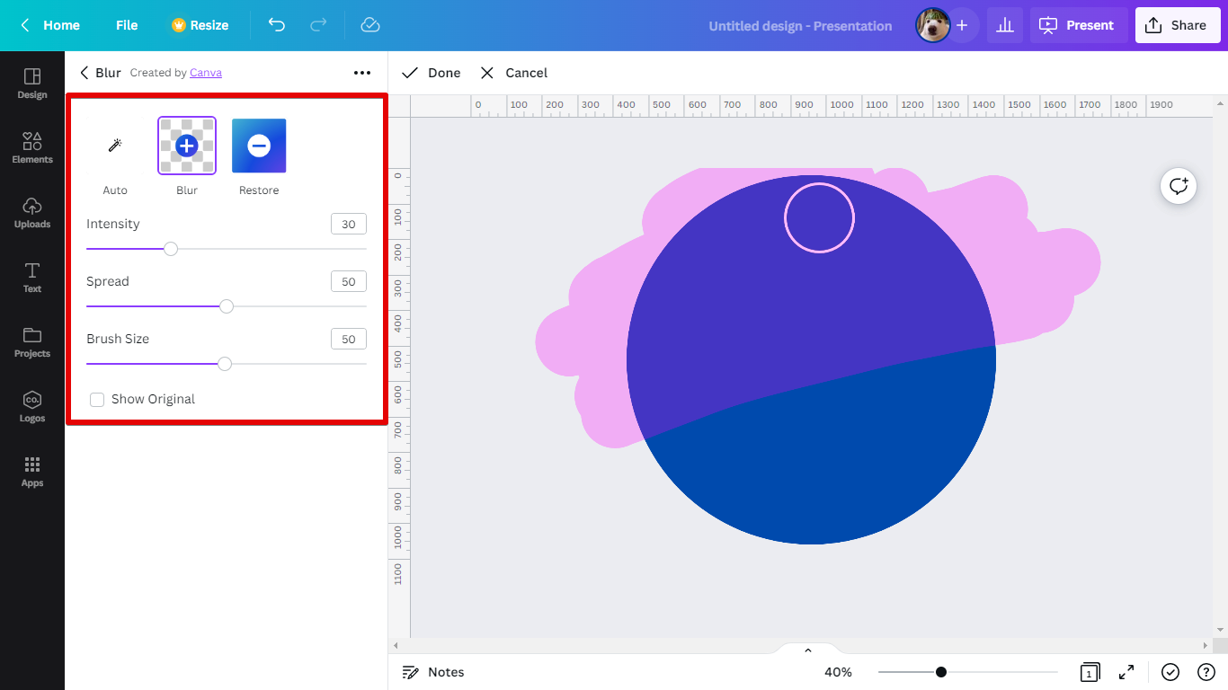 PRO TIP: Please be aware that blurring a shape in Canva may not result in the desired effect. We recommend testing this out on a few different images to see if it works for your needs. Thank you for using Canva!