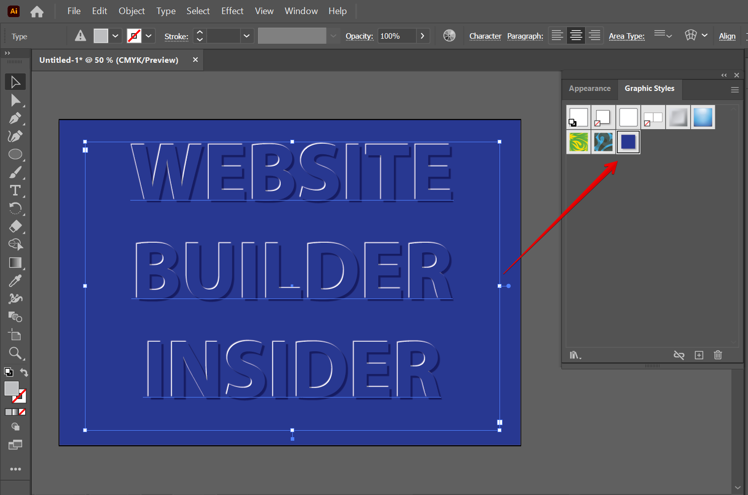 Now, select the text, then drag it to the “Graphic Styles” window.