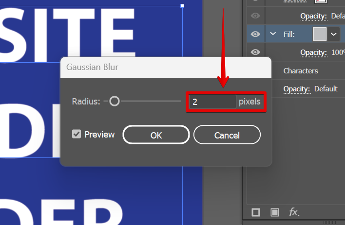 In the window that will appear, change the radius to 2 pixels then click “Ok.”