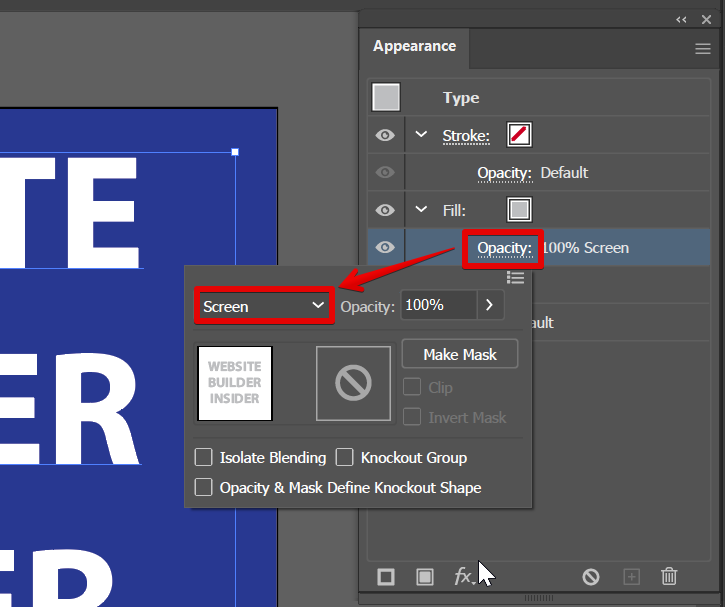 Click on “Opacity” and change the blending mode settings to “Screen.”