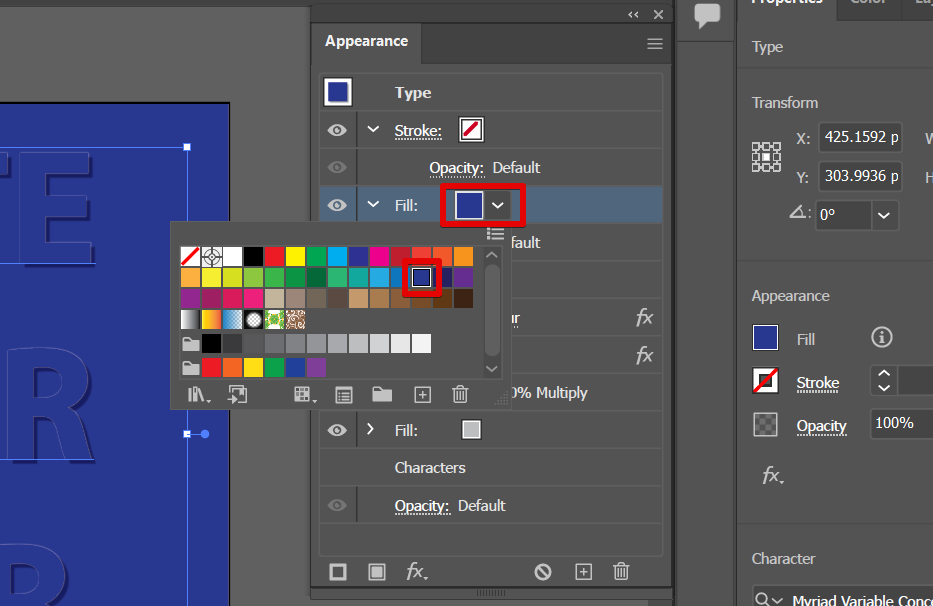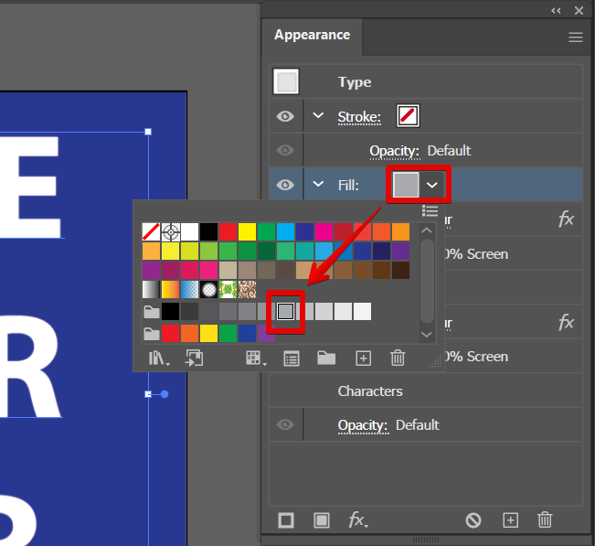 The next step is to create a new fill of your text in the “Appearance” window. This is where we will start adjusting the settings of the text to be embossed.