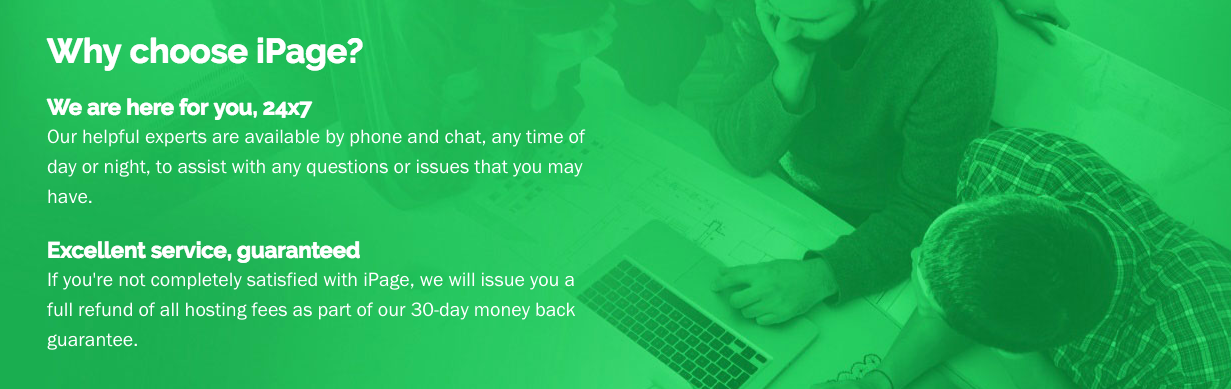 The iPage team is available to help with account and domain management, web design, and SEO and marketing.