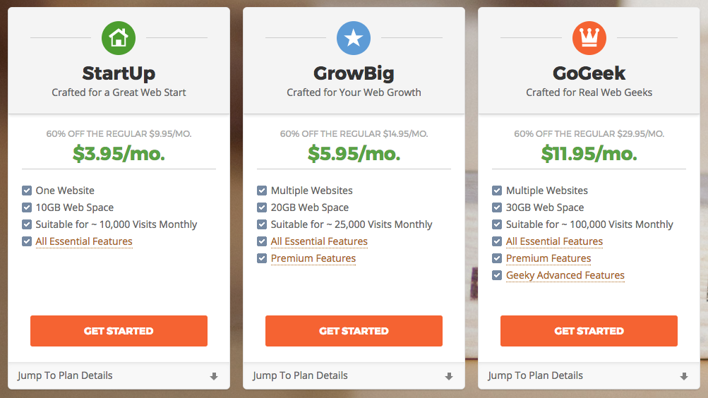 SiteGround offers shared, cloud, and enterprise web hosting services. For our review, we assumed that a shared plan would suffice for most users. There are three shared hosting options.
