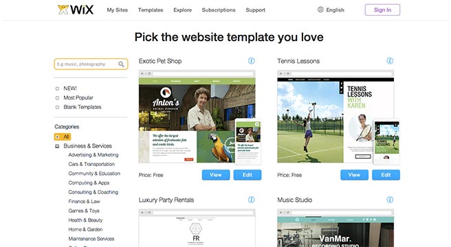 Feel free to check out their templates and website examples before choosing to use Wix. You’ll see that they’re professional and look really beautiful. The websites are created by non-professional web designers, which is really impressive.